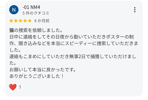 ペット捜索のご依頼をいただいたお客様から、たくさんのお喜びの声をいただきましたので一部ご紹介いたします。