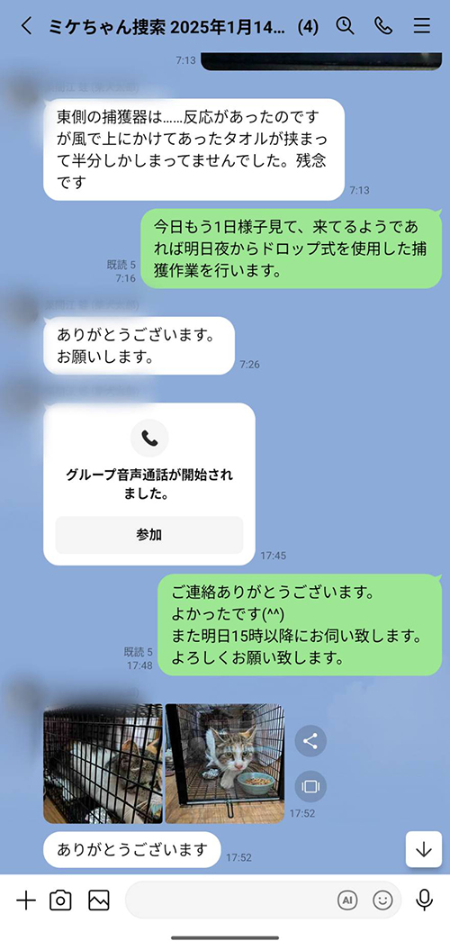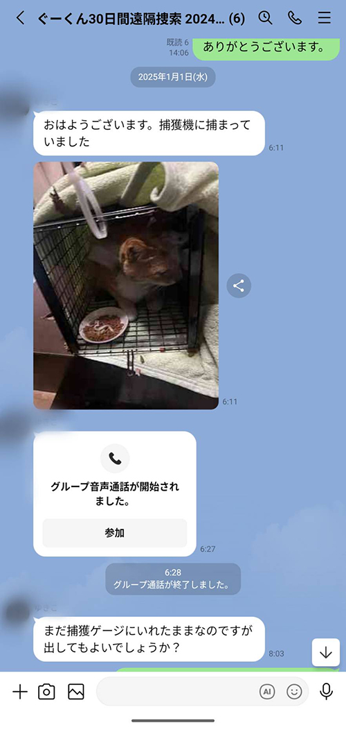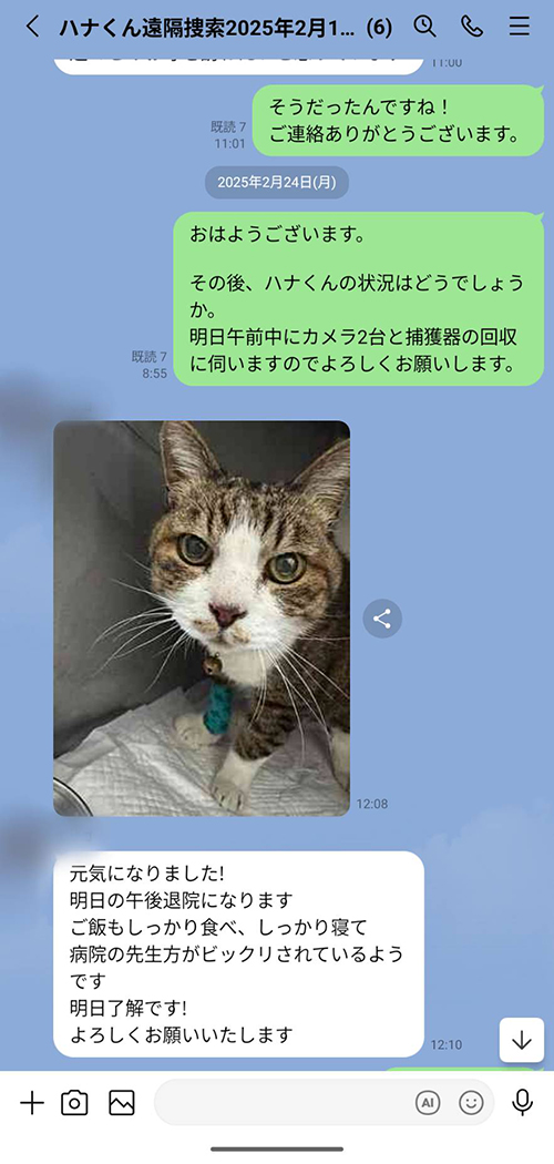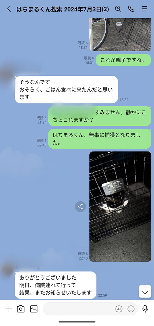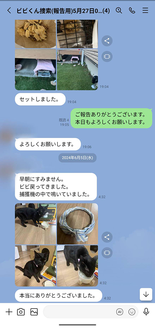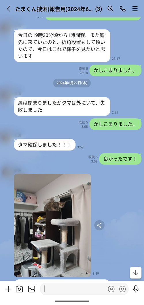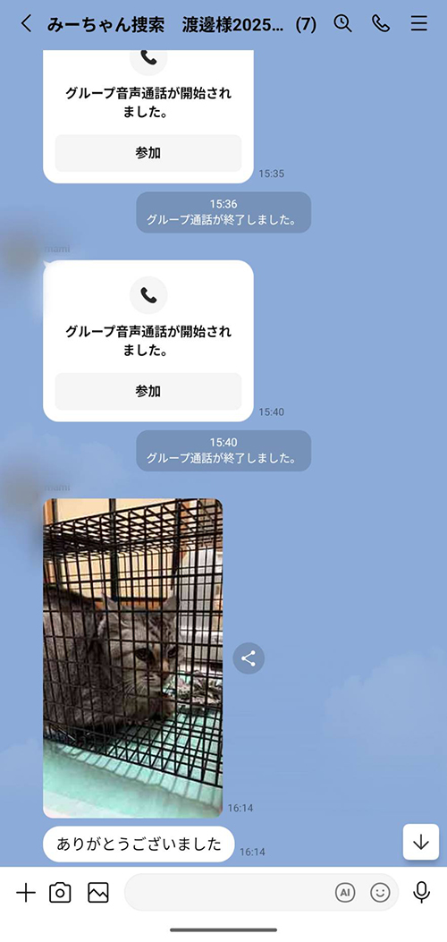 猫や犬などのペットが無事に保護もしくは発見したら、すぐにご連絡いたします。