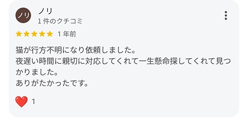 もし調査期間内にペットが発見できなかった場合は、それまでの状況をご報告した上で、調査の継続・終了をご判断いただきます。